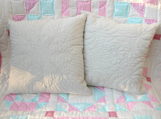 Die folgenden Bilder zeigen mögliche Muster die mit der Longarm auf Ihr Kissen gequiltet werden können. Es handelt sich hierbei um eine kleine Auswahl an Mustern. Weitere Muster sind auf Anfrage möglich.